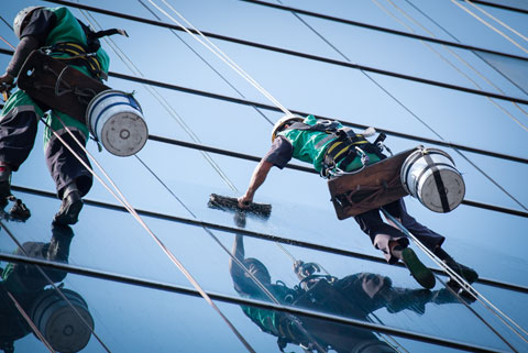 Window cleaning, or window washing, is the exterior cleaning of architectural glass used for structural, lighting, or decorative purposes. It can be done manually, using a variety of tools for cleaning and access.